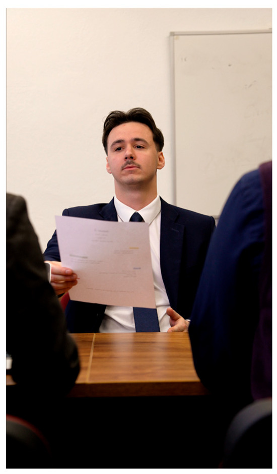 The video’s structure includes a situation of failure at a job interview with a participant who came to the interview unprepared and in casual clothing (a screenshot from the video in Figure 2). Then, it was emphasized that the first step to a candidate’s success is planning and preparing for the job interview.