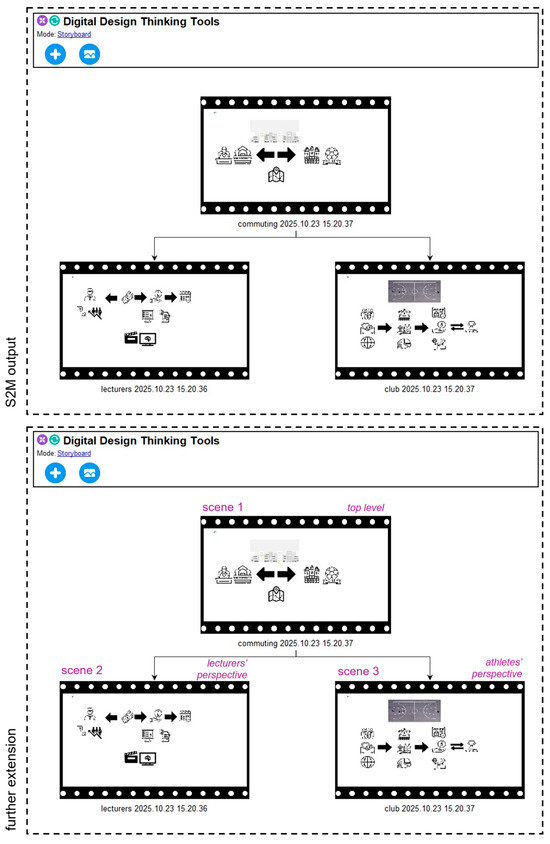 Due to the use of the S2M software tool (version 1.0) [52] within the OMiLAB platform [53], a library of applicable elements was created before the workshop. When creating it, keywords related to the topic obtained from previous materials and supplemented by the workshop members were considered. The elements from the library were created for the needs of the modelled process, and their exact meaning in the created scenes was specified during the creation of the prototype by the workshop participants themselves.
