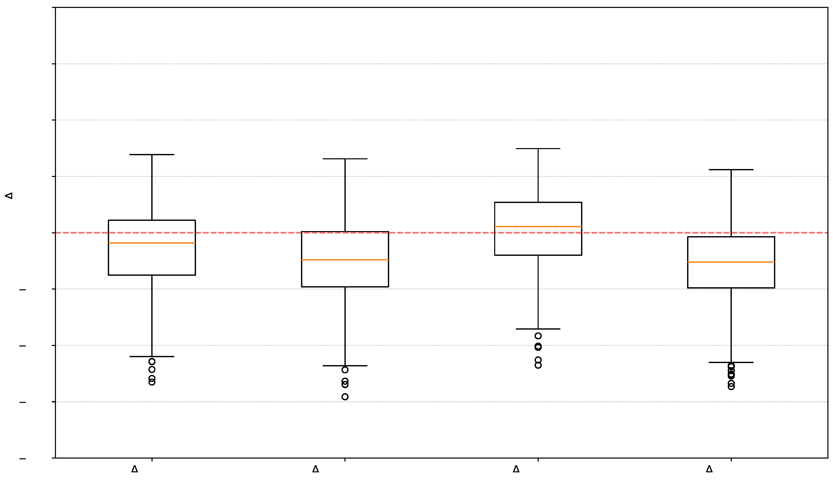 Figure 14 also reveals that GPT-5.1 stands out again as an exception. Its boxplot shows an interquartile range that extends into the positive zone, with outliers reaching the