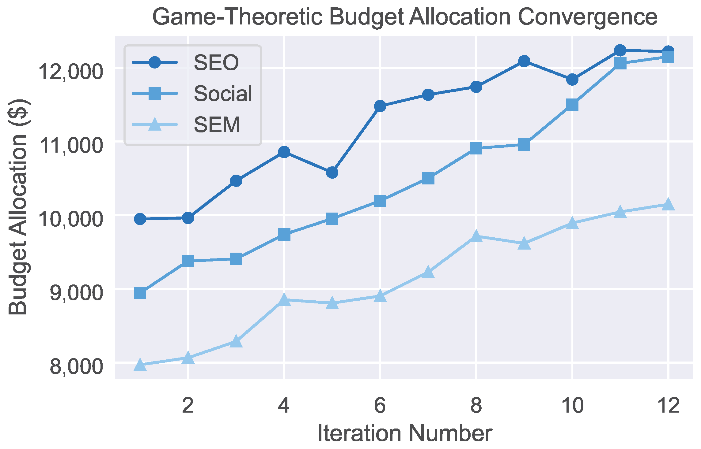18], but this capability is rarely linked to enterprise-scale marketing mix models or routine budget allocation processes. Consequently, the literature still lacks a systematic framework in which LLMs and game-theoretic reasoning are jointly employed to infer constraints, generate strategies, and iteratively approximate realistic budget allocations under uncertainty.