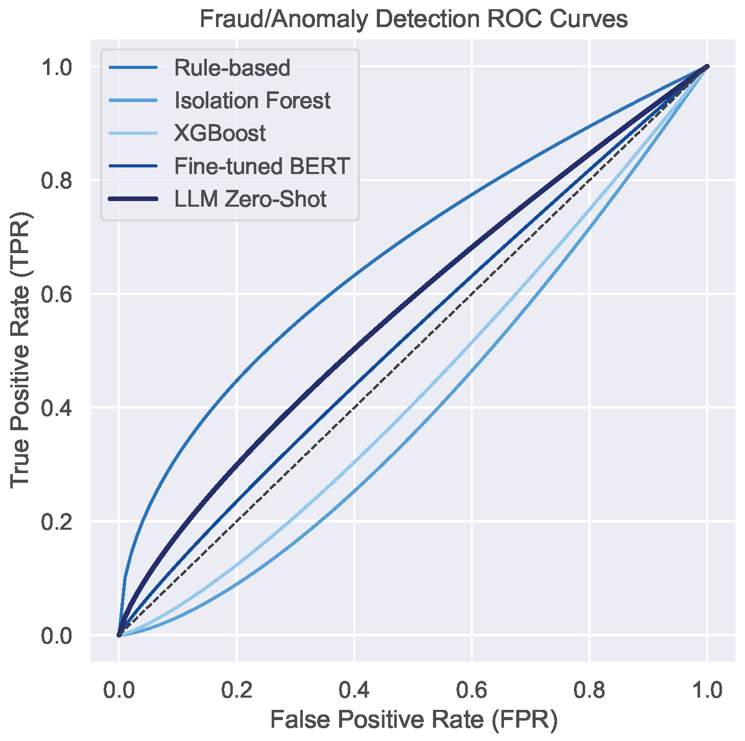 Status: Fully implemented using fine-tuned BERT anomaly detector + LLM zero-shot learning. Tested on 35,000 transaction records. Performance: AUC-ROC 0.972 (95% CI: [0.965, 0.979]).