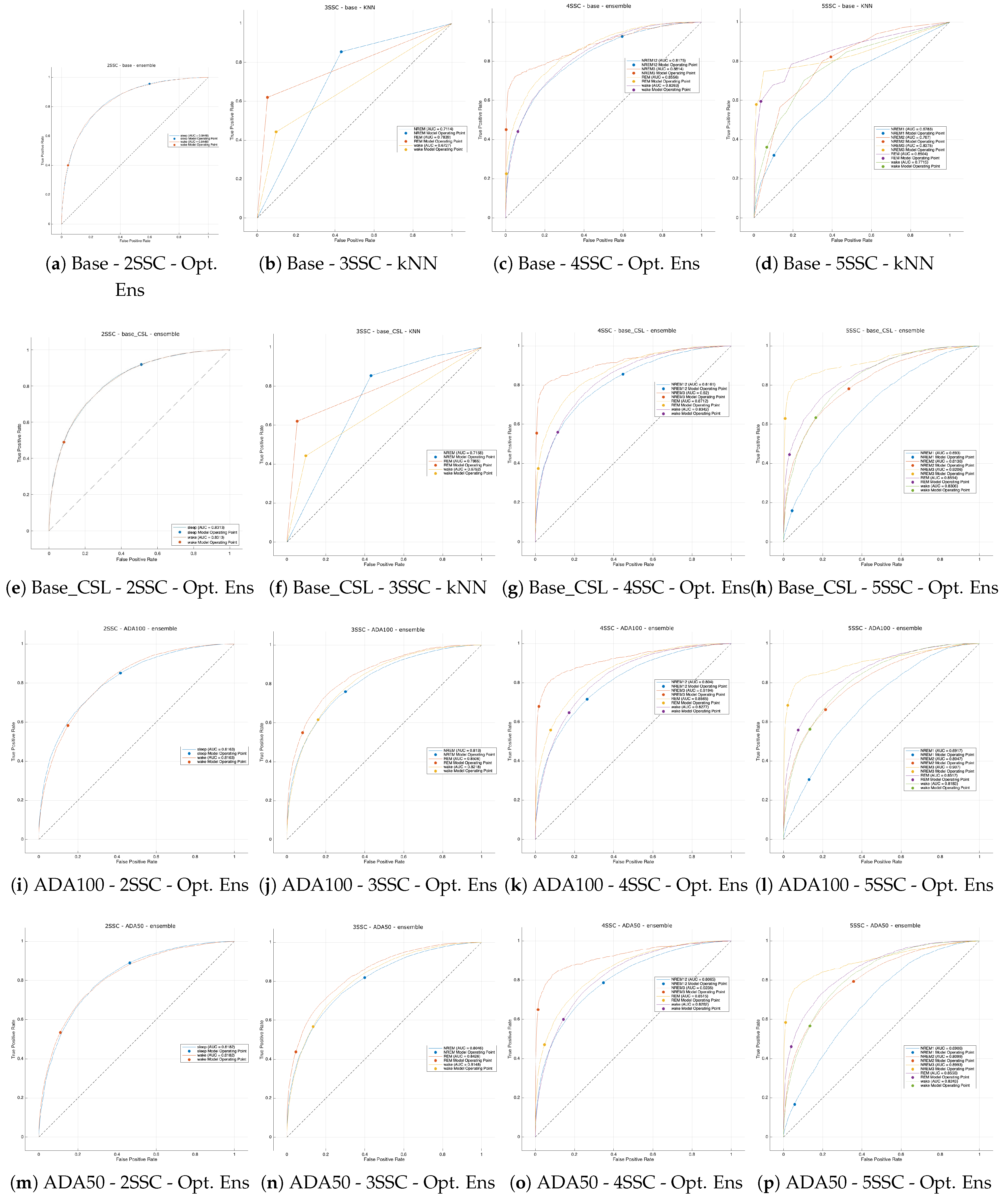 In order to provide additional performance metrics for the best modeling scenarios outlined, we present the ROC graphs for the best model in each of the 32 experimental scenarios in