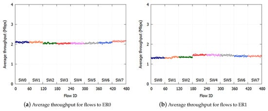 9]. A ring topology consists of Layer-2 Switches (SWs), and Edge Routers (ERs) are connected to the SWs. This network easily suffers from bufferbloat, however, because user traffic is forwarded along multiple ring nodes. If numerous user nodes are connected to SWs, the aggregated traffic to an ER can become congested. The queuing delay increases while throughput decreases in accordance with the number of SWs that the flow traverses. Thus, a fairness scheme is required in ring aggregation to achieve per-flow throughput fairness and bufferbloat avoidance, because frames are forwarded along multiple SWs.