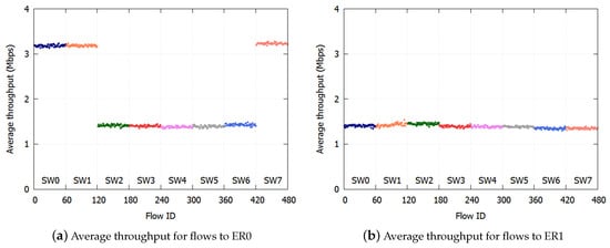 19]. Colors are assigned to frames based on input rate, and frames are discarded according to their color and a frame-dropping threshold, which is shared by SWs through a notification process. The performance of NRN + 1CM was confirmed through mathematical formulation and computer simulations; per-flow fairness can be achieved regardless of traffic types, the number of SWs and buffer sizes. However, previous works focused on a logical daisy chain topology with a single ER. The currently available threshold notification process of NRN + 1CM cannot be employed for ring networks with multiple ERs.