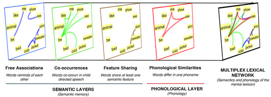 - Stella, M.; Beckage, N.M.; Brede, M. Multiplex lexical networks reveal patterns in early word acquisition in children. Sci. Rep. 2017, 7, 46730. [Google Scholar] [CrossRef] [PubMed]