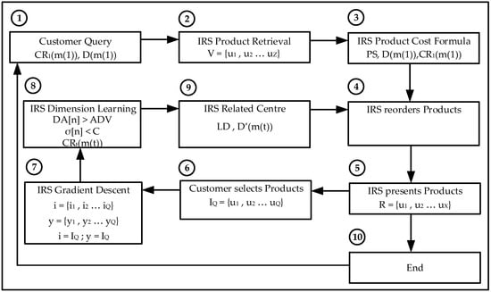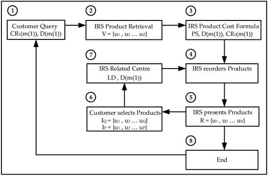 The data set is processed by extracting its relevant information and combining all the ratings from individual customers to the same products; the average value is the final product rating. Each product is a multidimensional vector consisting of the different properties or dimensions defined by the customer on its request. The Intelligent Recommender System provides to the customer a reordered list of products re-ranked; the customer then selects the most relevant products and the IRS continues the customer feedback iterative process or provides the final products.