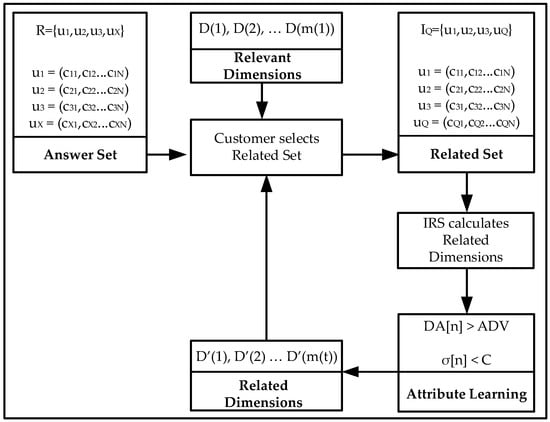 An iterative recommendation process is presented that acquires and adjusts to the perceived customer relevance according to the dimensions or attributes the customer has initially selected on its request.