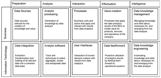 Big data management canvas [7,8]: According to the theory of Business intelligence as a cognitive system in Figure 3, the aspects of data preparation, analysis, interaction, effectuation, and intelligence align both business and IT fields of action to create value from data.