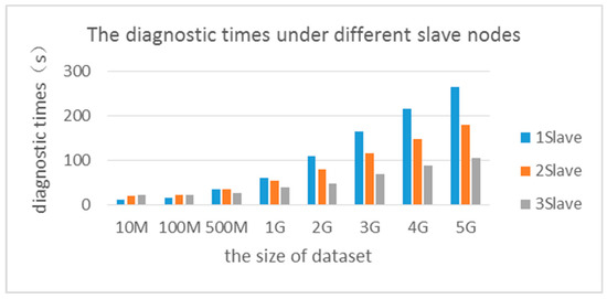 The datasets of different sizes are run in the cluster mode of the Hadoop platform. The diagnostic times under different slave nodes are shown in Table 12.
