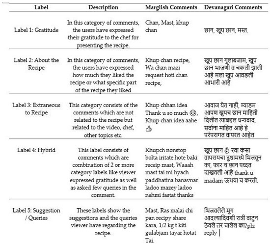Table 3. Number of comments in each label category for the Devanagari dataset. - Labeling and Categorization: The data is been manually labeled into 5 categories as mentioned in the Figure 2