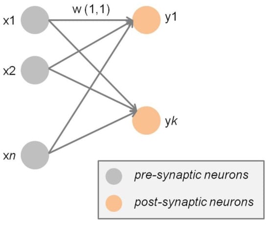 Unsupervised learning [6,26,27,28], one may also call it self-reinforced learning, is essential to the principle of self-organization, as illustrated by functional dynamics of the neural network systems described in Adaptive Resonance Theory (ART) and Self-Organizing Maps (SOM). Unsupervised learning is essential to overcome the stability–plasticity dilemma in neural networks, and both ART [27] and SOM [28,29] are based on unsupervised approaches that are fundamental in machine learning in general and in Artificial Intelligence (AI) in particular. The Hebbian synapse and synaptic learning rules [6] are the fundamental conceptual basis of unsupervised learning in biological [30] and artificial neural networks [31]. A synapse refers to connection between two neurons in a biological or artificial neural network, where the neuron transmitting information via a synapse or synaptic connection is referred to as the pre-synaptic neuron, and the neuron receiving the information at the other end of a synaptic connection as the post-synaptic neuron (Figure 1). The information propagation efficiency of biological and artificial synapses is strictly self-reinforcing as the more a synapse is stimulated, the more effectively information flows through the connection, which ultimately results in what Hebb [6] and subsequently others [3,31] have called Long-Term Potentiation (LTP). Synaptic connections that are not repeatedly stimulated and as a consequence not self-reinforced will lose their information propagation efficiency, which ultimately results in Long-Term Depression (LTD).