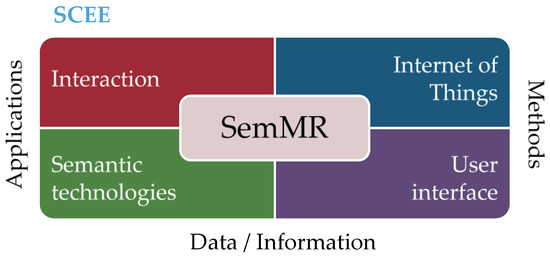 SemMR enhances MR development systems/platforms by (a) integrating a graphical drag-n-drop code-free authoring environment for synthesizing open and reusable MR experiences, (b) recommendation methods for automatically suggesting related external data/info to be attached to MR content for enhancing it, and for automatically suggesting new eX-trajectories to support the reconfiguration of existing (towards optimization), (c) focusing on IoT to allow for seamless and ‘live’ interaction of interconnected trustworthy deployed entities (human and non-human ones), (d) properly understanding human behaviour and cognition while experiencing MR worlds, (e) semantically integrating external heterogeneous and disparate information in order to enrich the content of the MR experiences, improving their quality and, thus, the quality of the user experience, and (f) appropriate models and methods for the reuse of connections between virtual and real objects, in more than one MR world, enlarging, this way, the MR environment