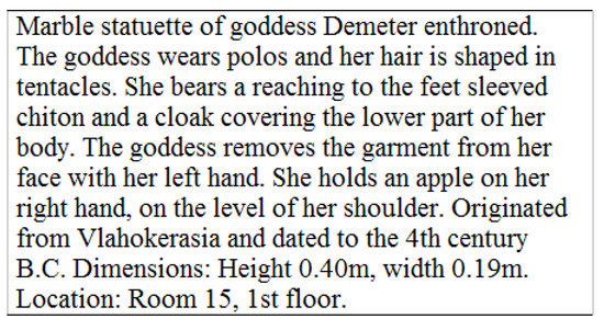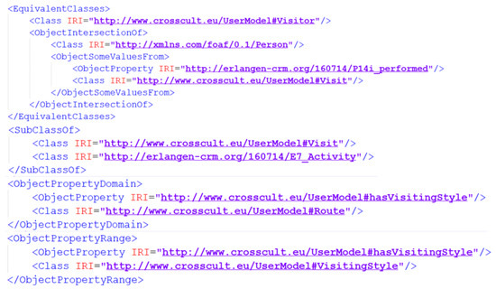 Figure 4 depicts a description of an exhibit (PoI), while Figure 5 illustrates the exhibit (PoI) modelling within SemMR. The CrossCult definition of a Visit (and related classes i.e., Visitor and VisitingStyle) in its User-Model namespace has a central role in the representation of the knowledge in SemMR.