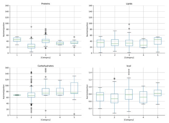 | Carbohydrates (g/portion) | 75.07 | 4.29 | 162.27 | 22.33 |