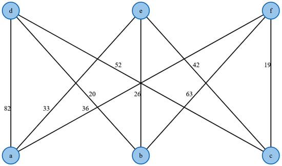 Optimization models are numerous and this is not the place to discuss a choice but to identify the strategic problem. Any combination of map tasks and reduction tasks can be recorded and figured as map (min, max) and reduce (max, min) and combined in vertices. While the corresponding time series of any combination can be represented in triplets, in which way the methodology of bipartite hypergraph operable partitions is developed, which represents a new way of information processing of only non-contradictory solutions of any kind of triplet [25]. A bipartite graph is shown based on the example in Figure 1, Figure 2, Figure 3 and Figure 4 and the related code can be found under the GitHub link (https://github.com/OtmaneAzeroualDZHW/Creating_bipartite_graph, accessed on 4 February 2021).