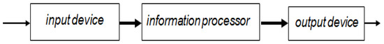 In a general case, the information processing device hardware consists of three main components: an input device, information processor, and output device. This is described by the following schema: