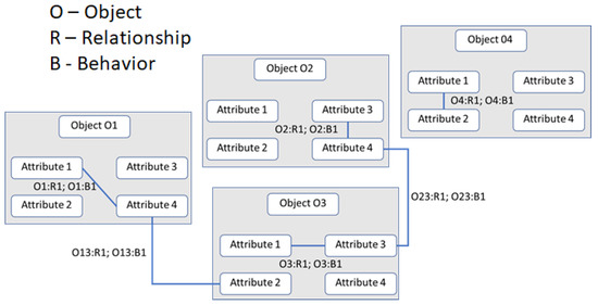 It is important to emphasize the differences between data, data structures, knowledge, and knowledge structures. Data are mental or physical “observables” represented as symbols. Data structures define patterns of the relationships between data items. Knowledge is a system that includes data enhanced by relations between the data and the represented domain. Knowledge structures include data structures abstracted to various systems and inter-object and intra-object relationships and behaviors, which emerge when an event occurs, changing the objects or their relationships. The corresponding state vector defines a named set of knowledge structures, a representation of which is illustrated in Figure 8.
