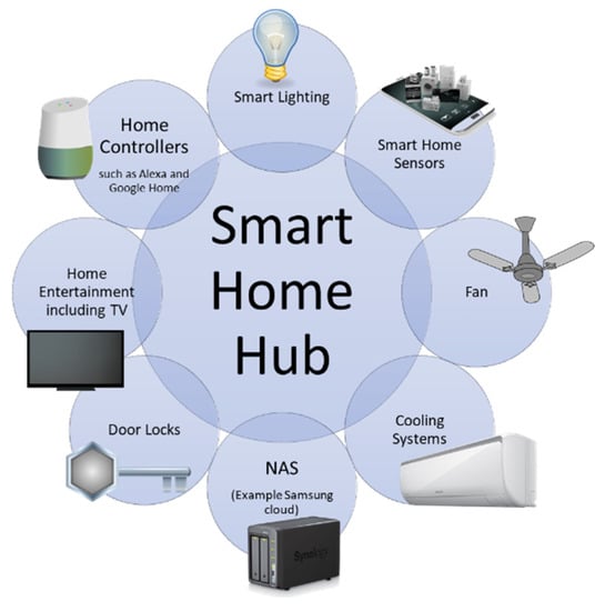 In the last decade, home appliances have transitioned from being made up of simple devices supported by low-cost sensors to intelligent devices that can detect human movement [,,]. A smart home is an environment where household appliances can be monitored and controlled remotely based on the state of various built-in devices such as sensors and actuators []. More commonly, a smart home has many standalone appliances with a convenient way to automatically identify, monitor and control an appliance to perform various operations such as change its on/off status []. This is normally possible due to seamless integration of technologies via the Internet and the advancements in Internet of Things (IoT) [,].