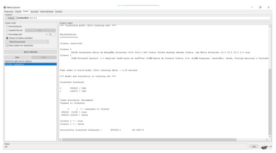In this paper, we explore the effects of an ontology in a recommendation system. We have done this by applying four machine learning clustering algorithms (Simple K-Means, Expectation Maximization—EM, Make Density-Based Clusterer, and Farthest First) with classification via clustering to a wine dataset with user reviews. We use clustering algorithms because they are one of the most common exploratory data analysis techniques used to get an intuition about the data structure []. It can be defined as the task of identifying subgroups in the data such that data points in the same subgroup (cluster) are very similar, while data points in different clusters are very different. Clustering algorithms can automatically recognize the pattern inside the data so as to analyze the collected data without their labels.