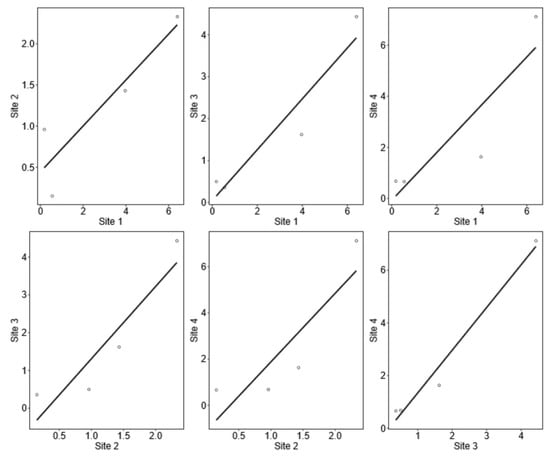 3.4. Comparison between Each Pair of Sites Using Each Method