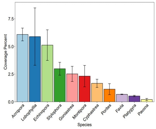 3.7. Comparing the Coverage Percentages of Eleven Coral Species