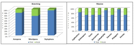 - Acropora species that grow either as slender or broad branches achieved 86.66%.