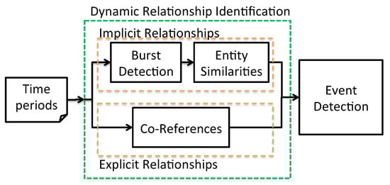 The Explicit Relationship Identification exploits links among Wikipedia articles to create the connection among their corresponding entities. Each hyperlink tha tis newly introduced or modified in each article revision shows explicitly a tie among the source and destination entities. For instance, for the duration of the Friday of Anger, the Wikipedia article “National Democratic Party” received many revisions where the hyperlink to the article “Ahmed Shafik” was also edited many times. This discloses a connection between the two entities participating in the rebellion. We explain strategies of this method in Section 5.1 and Section 6.1. In the Implicit Relationships Identification, we modify the technique suggested in [] with the scope to represent the entity connections by using burst patterns with spikes driven by means of actual-international activities of the entities [,]. In order to prevent the accident of unbiased entities, which burst across the equal chronological period, we enforce that the entities share textual or structure similarities for the duration of the observed time. With the exception of the point-wise mutual information (PMI) [], we advise different similarity measures for every implicit connection, as mentioned in Section 5.2.