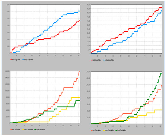 As has been assumed by Simon and Sullivan [60], a brand name represents a compound of a firm’s most thriving products, opening way for active digital marketing strategies involvement. In websites, a firm’s digital brand name variation can be depicted by web traffic variability, especially organic, direct, and referral traffic. Moreover, firms need to acknowledge whether online consumers and website visitors prefer using desktop or mobile devices for entering their web domains. Firms should bear in mind various factors that affect mobile and desktop devices when aiming to harness device usage in favor of their digital brand name’s interpretation.