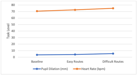 - The addition of several turns, intersections, and landmarks on the difficult routes would elicit increased psychophysiological activation, such as increased heart rate, eye gaze, and pupil dilation.