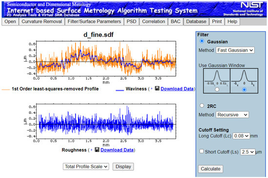 An online system developed by the NIST of the USA [14,30] (see Figure 4) supports the surface height processing as mentioned above.