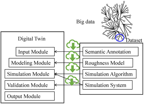 Considering the issues of BD inequality, semantic annotation, and DT, a BD preparation method is proposed, as schematically illustrated in Figure 5. As seen in Figure 5, a dataset of BD consists of four segments denoted as semantic annotation, roughness model, simulation algorithm, and simulation system. These segments can be downloaded while developing a DT of surface roughness.