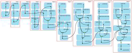 NWeight: NWeight is implemented by Spark GraphX library and pregel, and it works as an iterative parallel algorithm. It enhances the Spark RDD with a directed multigraph, which consists of properties enclosed with vertices and edges. The input files consist of millions of edges. It required eight different stages to complete the task. The workload DAG of stages is shown in Figure 10.