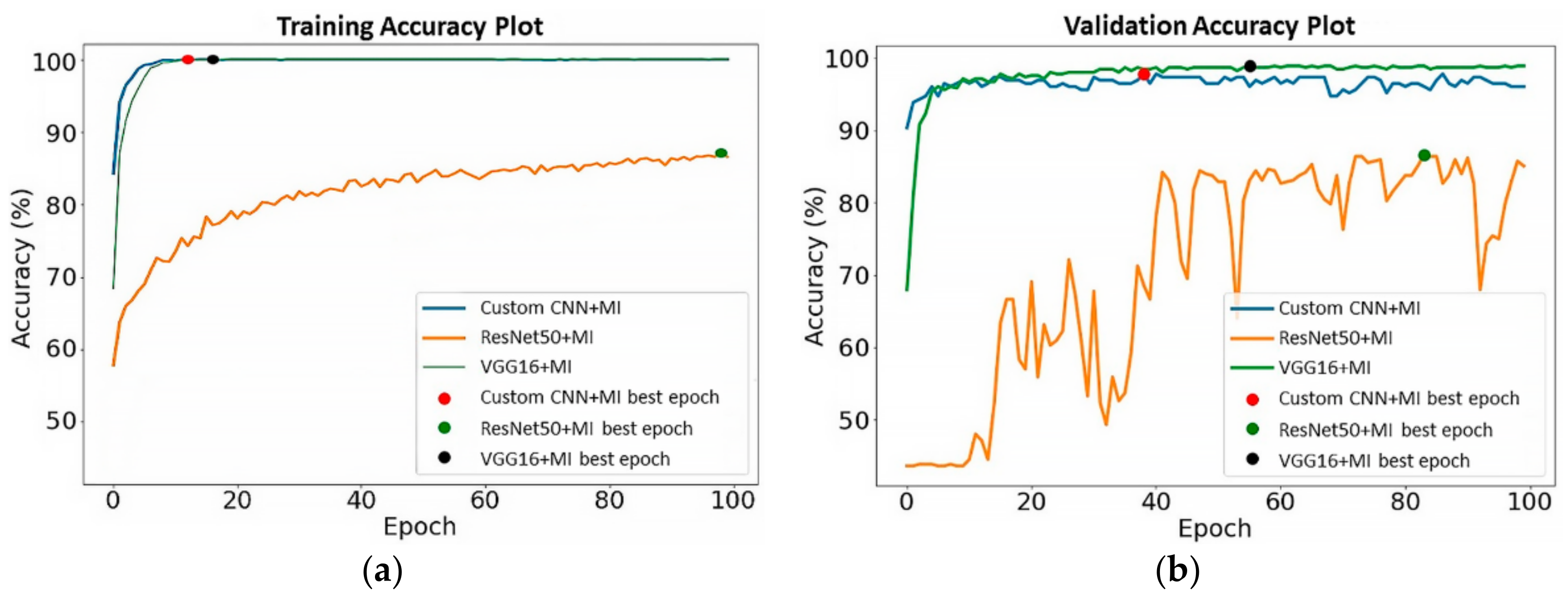 | Custom CNN + MI | 85 ± 4.95 | 96 ± 2.72 | 90.5 ± 4.06 |