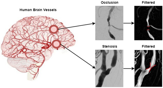 Choosing the biomarker is important to start looking for treatment for the disease, and this is what the researchers pointed out for Alzheimer’s disease in [43,44], where they recommended the use of techniques that focus on the harmful reduction of cerebral blood flow. Besides, there is a relationship between low cerebral blood flow and Alzheimer’s disease [9]. Furthermore, patients with Alzheimer’s disease have been shown to have approximately a 30% reduction in blood flow to the brain [45]. Moreover, cerebral vascular dysfunction is a major cause of reduced cerebral blood flow, as it is described as a diminished blood vessel diameter and loss of small blood vessels [46,47]. Examples of carotid artery diseases are stenosis and occlusion. Stenosis refers to the narrowing of carotid arteries caused by the buildup of fatty substances and cholesterol deposits, called plaque. Even more, occlusion refers to a worsening condition of stenosis with a clot, which is defined as a complete blockage of the artery. These diseases are the most common contributing factors that cause a reduction of cerebral blood flow.