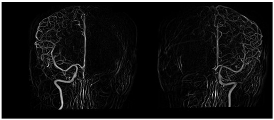 Finally, the filtered left and right ICA images are stacked in a single image, where each image represents the average of frames in DCT space after transforming back to the real space. These preprocessing steps help to prepare the dataset for the next two stages of feature extraction and classification, in which we improve the standardization among DSA scans for different participants. Figure 4 shows the scan after performing the above-preprocessing steps.