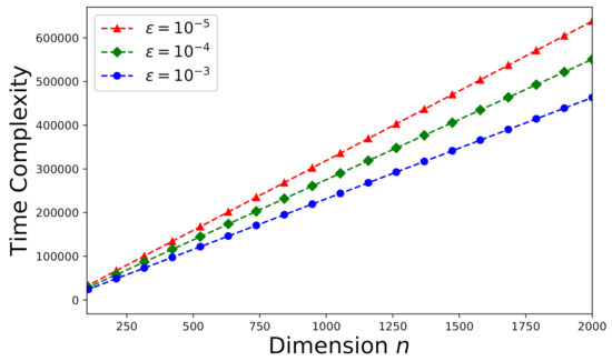 where is another constant related to the matrices and . As proven by Theorem 4 in [48], one has to iterate the while-loop in Algorithm 1 for at least times. For each while-loop in Algorithm 1, the time-complexity here (for ) is the same as that for solving the consistent system with instead. Therefore, the time-complexity for a consistent system with can be bounded as: