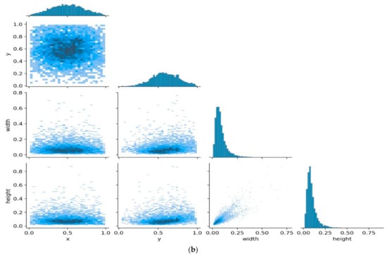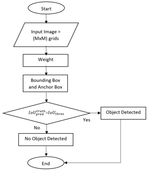 In order to compute the coordinates in the core point, the cross-entropy loss is applied, and the variance loss is applied for the width and height parameters. Our experiment used a value of 0.5 for , which means that the errors in width and height in the calculation were less significant. When the grid predicts the presence of an object, the computation for a coordinate error is performed [54].