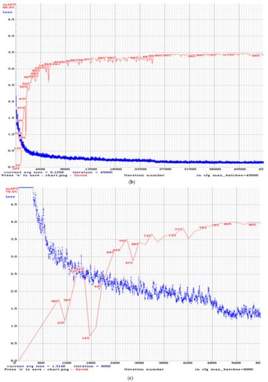 Training performance: (a) Densenet Yolo V2 CSP SPP; (b) Resnet Yolo V2 CSP SPP; (c) Yolo V4 CSP SPP.