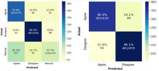 - Alhindi, T.; Alabdulkarim, A.; Alshehri, A.; Abdul-Mageed, M.; Nakov, P. AraStance: A Multi-Country and Multi-Domain Dataset of Arabic Stance Detection for Fact Checking. In Proceedings of the Fourth Workshop on NLP for Internet Freedom: Censorship, Disinformation, and Propaganda, Online, 6 June 2021; pp. 57–65. [Google Scholar] [CrossRef]