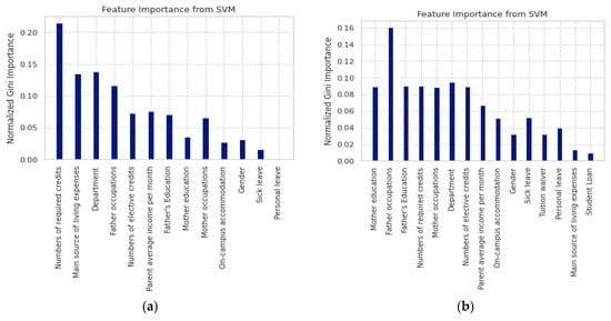 Features 1–15 were input (independent) variables and Feature 16 was the output (dependent) variable for prediction models. Nevertheless, Feature 10 [student loan] and Feature 11 [tuition waiver] were not applied for Group 1 (international students), since the school did not offer loan and tuition waiver to these students at the research time.