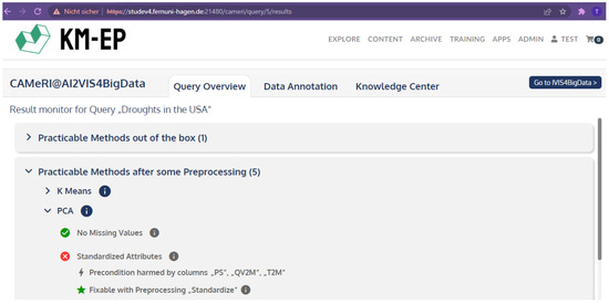The remaining challenges include addressing the identified problems during the cognitive walkthrough and repeating the cognitive walkthrough with a larger peer group containing meteorologists. Potential next steps are integrating the created recommendations into the AI2VIS4BigData user interface (Section 3.4) and an extension on a recommender system that prioritizes the guidance of all technically suitable analysis methods and pre-processings based on user preferences.