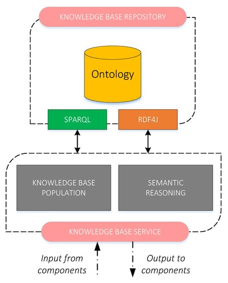 The use of ontologies requires an ontology language that is well-designed, well-defined, and web-compatible, as well as supporting reasoning tools. The Resource Description Framework (RDF) is a simple knowledge representation language that aims to standardize metadata and descriptions of Web-based resources definition and use []. The basic building block in RDF is a set of subject-predicate-object triples. Moreover, the Web Ontology Language (OWL) is a set of knowledge representation languages that is commonly used to create ontologies and was created to display rich and more complex information about things, groups of things, and relationships between them []. OWL has become the official World Wide Web Consortium (W3C) recommendation [] for authoring and sharing ontologies and extends existing Web standards for representing knowledge such as the RDF, XML, etc.