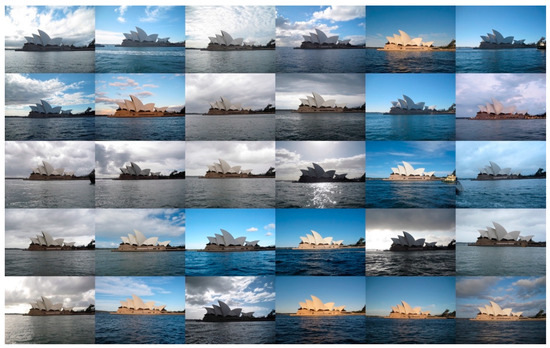 It is also worth noting that ‘real’ reality is often incredibly rich and dynamic, and that our perceptual systems are exceptionally good at perceiving this as a stable and constant ‘reality’. Colour perception is a good example, the ‘colour’ of objects is perceived as constant and fixed, while the actual wavelength of the visual spectrum received through the optical input is actually constantly changing depending on the environmental light [14]. This is illustrated in the collage of images of one building under different lighting conditions in Figure 1. We are creating this awareness of stability effectively through illusion [15,16]. To paraphrase Van der Veer, ‘reality is what we know is real’.