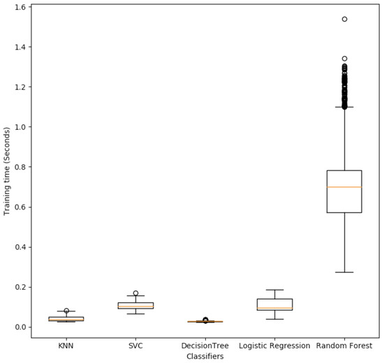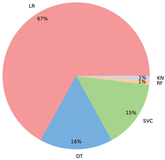 Let us briefly point out the main advantages and disadvantages of each algorithm. KNN is non-parametric and does not make any prior assumption on the data distribution; however, it can exhibit poor performance for high dimensional data and in presence of irrelevant features. SVC is quite robust with respect to the behavior of observations that are far from the decision boundary, but it is not suitable for large data sets. Considering DT, although its results are interpretable, it is sometimes less accurate compared to the other algorithms. RF requires higher training time than other algorithms, but it is suitable when the dataset is large and interpretability is not a major concern. LR is very efficient to train and does not make any assumptions about distributions of classes in the feature space; however, if the number of records is much smaller than the number of features, it may result in overfitting [58].
