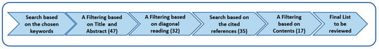 A total of 32 articles were selected, following a deep and detailed analysis. Further, a deeper search was performed on the references of the selected studies. This led to the selection of three other papers considered as pertinent to the scope of our research. Then, the selected articles were thoroughly read and carefully examined, and 17 studies were deemed relevant to the scope of our research. Finally, the articles’ descriptive details were checked and filed in a Zotero database. Figure 3 represents the methodology followed for the literature search.