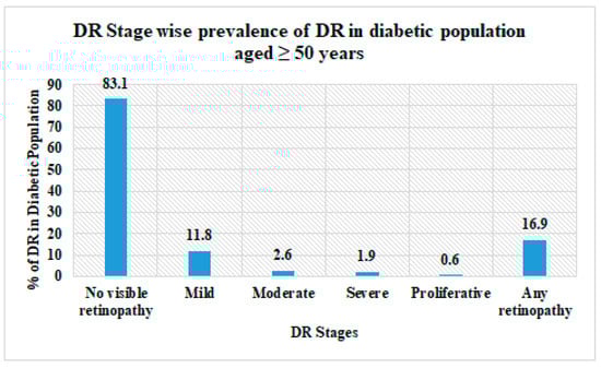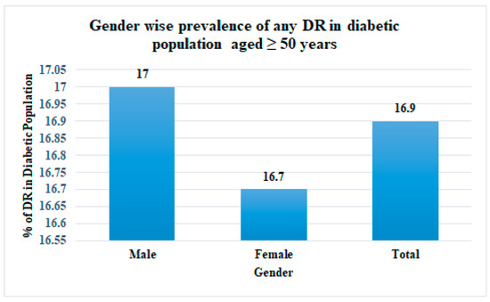 Gender-wise prevalence of any DR in the diabetic population aged ≥50 years.