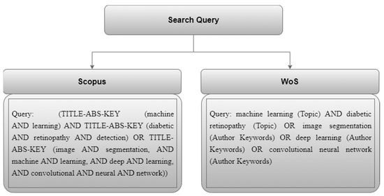 The data were collected from the most popularly known databases, i.e., Scopus and Web of Science (WoS). Figure 5 shows the search query [7] used in both databases for this study.