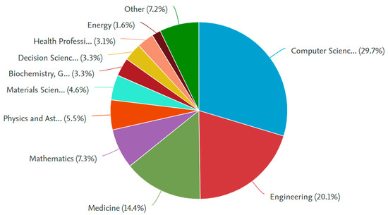 The highest proportion of the work was done in the computer science field at 29.7% and in the engineering domain at 20.1% (Figure 11). Of course, people in the medical area were also working to find a solution for automated diagnosis.