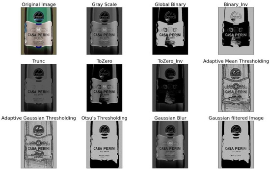 Optical Character Recognition (OCR) was applied to explore the label image shear on the wine bottle. It is often curved and in several different positions, factors that made it difficult to standardize the data extraction from images. With the additional experimentation of several image filters presented in Figure 2, we tried to calibrate the textual recognition algorithms from the labels.