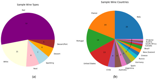 Sample distribution by types (a) and countries (b) in the 100 selected wines.